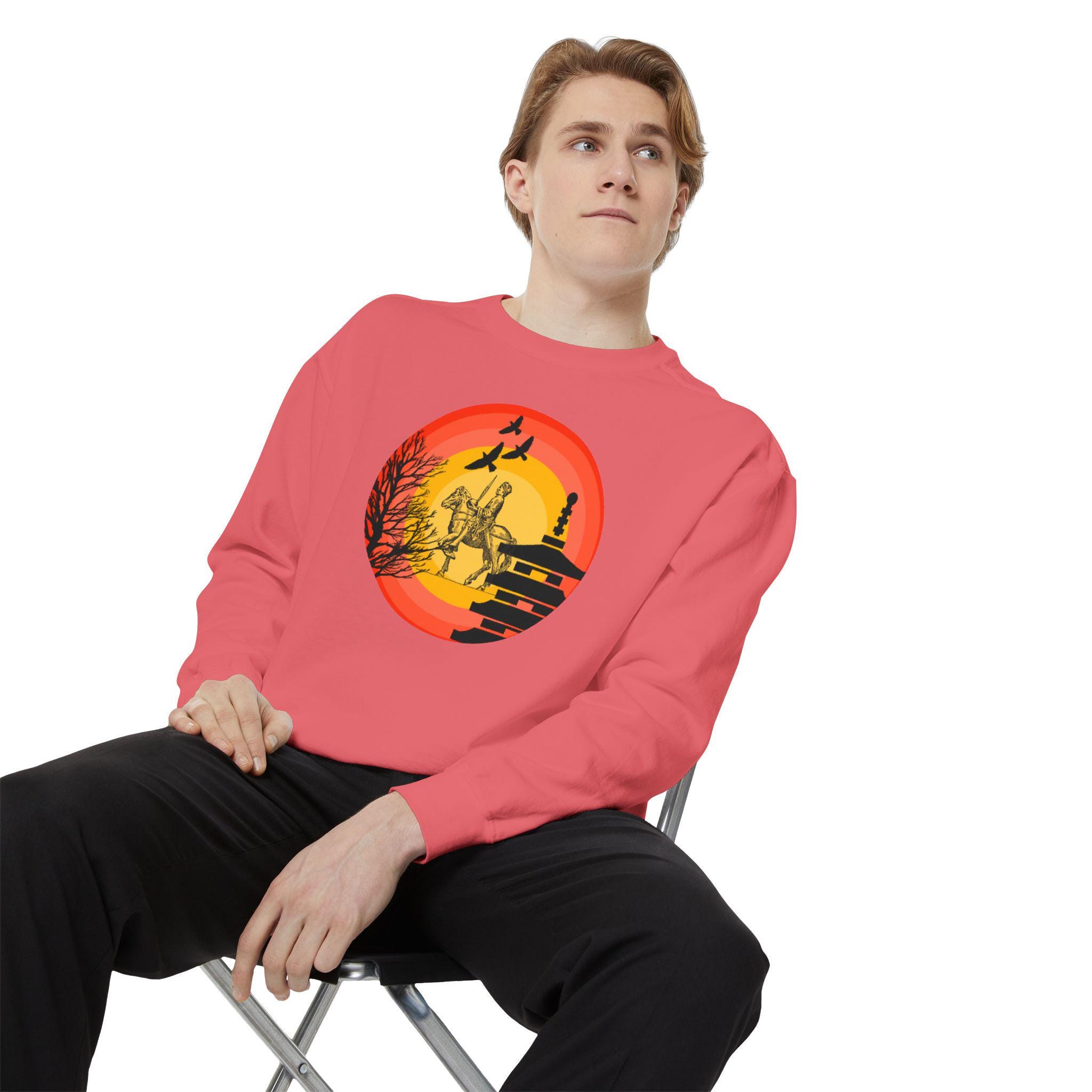 Introducing our cozy and stylish Unisex Garment-Dyed Sweatshirt, designed to elevate your wardrobe while providing comfort. This sweatshirt features a unique design that captures a vibrant sunset scene, making it a perfect piece for those who love art and inspiration. Its relaxed fit ensures you'll feel at ease whether you're lounging at home or out with friends. Ideal for casual outings, cozy nights in, or even as a thoughtful gift for fellow art lovers, this sweatshirt brings warmth and style to any occasion. It's perfect for holidays like Valentine's Day, birthdays, or just as a special treat for yourself! Wear it proudly during seasonal festivities, or simply enjoy it as part of your everyday together.