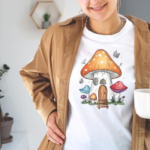 Discover the charm of the Fairy Mushroom House T-Shirt Mockup, a whimsical fantasy tee design perfect for creators seeking a unique digital download. This cute cottage illustration captures a playful and enchanting aesthetic that sets your apparel designs apart, offering a fresh and authentic look for your creative projects. Crafted with attention to detail, the high-resolution digital file ensures easy customization and seamless integration into your product line.